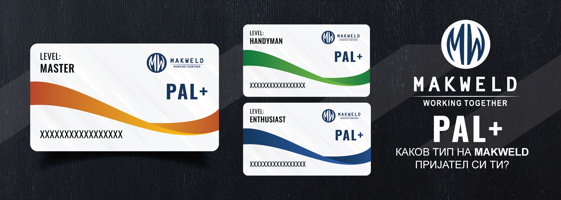 *Со зачленувањето во Makweld Pal+ програмата добивате картичка за лојалност која ќе служи како ваше средство за идентификација при користењето на сите бенефиции и поволности кои следуваат со неа.